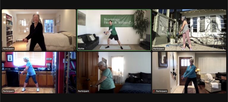 Online Fitness Classes are fitness classes over Zoom with live, real-time instruction! Richie Bencivenga teaches three Online Fitness Classes each week: a Core/Balance Class on Tuesdays, a Full Body Stretching Class on Wednesdays, and a Full Body Strength Training Class on Saturdays. Here's more information about Richie's Online Fitness Classes!